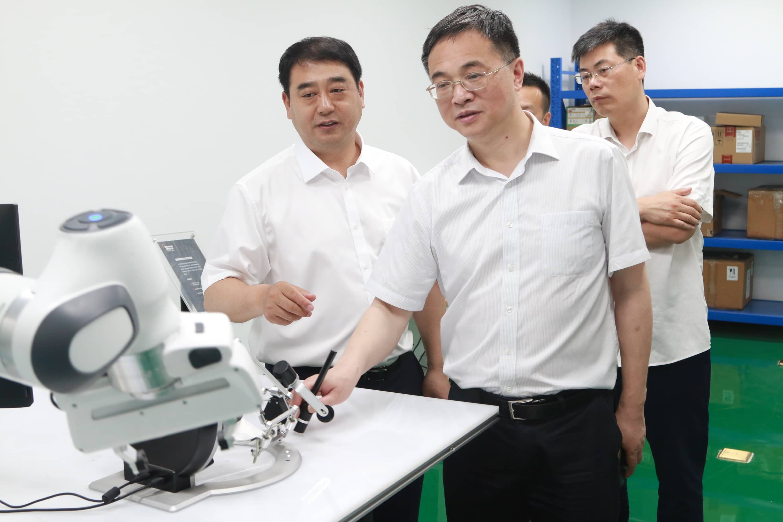 5月30日,杭州地鐵集團(tuán)董事長(zhǎng)朱少杰率領(lǐng)代表團(tuán)訪問申昊科技,與申昊科技領(lǐng)導(dǎo)就合作事宜進(jìn)行討論。杭州地鐵集團(tuán)副總經(jīng)濟(jì)師、投資運(yùn)營(yíng)部長(zhǎng)周華,機(jī)電設(shè)備部長(zhǎng)朱建華,杭州地鐵運(yùn)營(yíng)公司黨委書記、董事長(zhǎng)徐波,杭州地鐵科技公司董事長(zhǎng)朱佳峰等領(lǐng)導(dǎo)陪同考察。申昊科技董事長(zhǎng)陳如申、總經(jīng)理曹光客等領(lǐng)導(dǎo)出席接待。雙方一同參觀申昊科技,并就地鐵數(shù)字化轉(zhuǎn)型進(jìn)行探討。