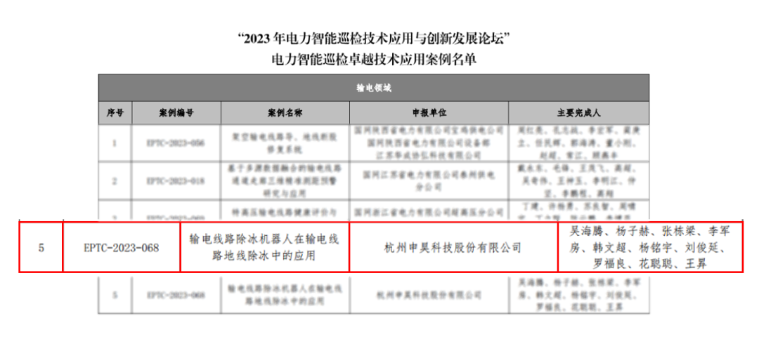 近日,在“2023年電力智能巡檢技術應用與創(chuàng)新發(fā)展論壇”上公布了2023年度電力智能巡檢技術應用案例遴選結果,其中杭州申昊科技股份有限公司斬獲卓越技術應用案例1項和創(chuàng)新技術應用案例2項。