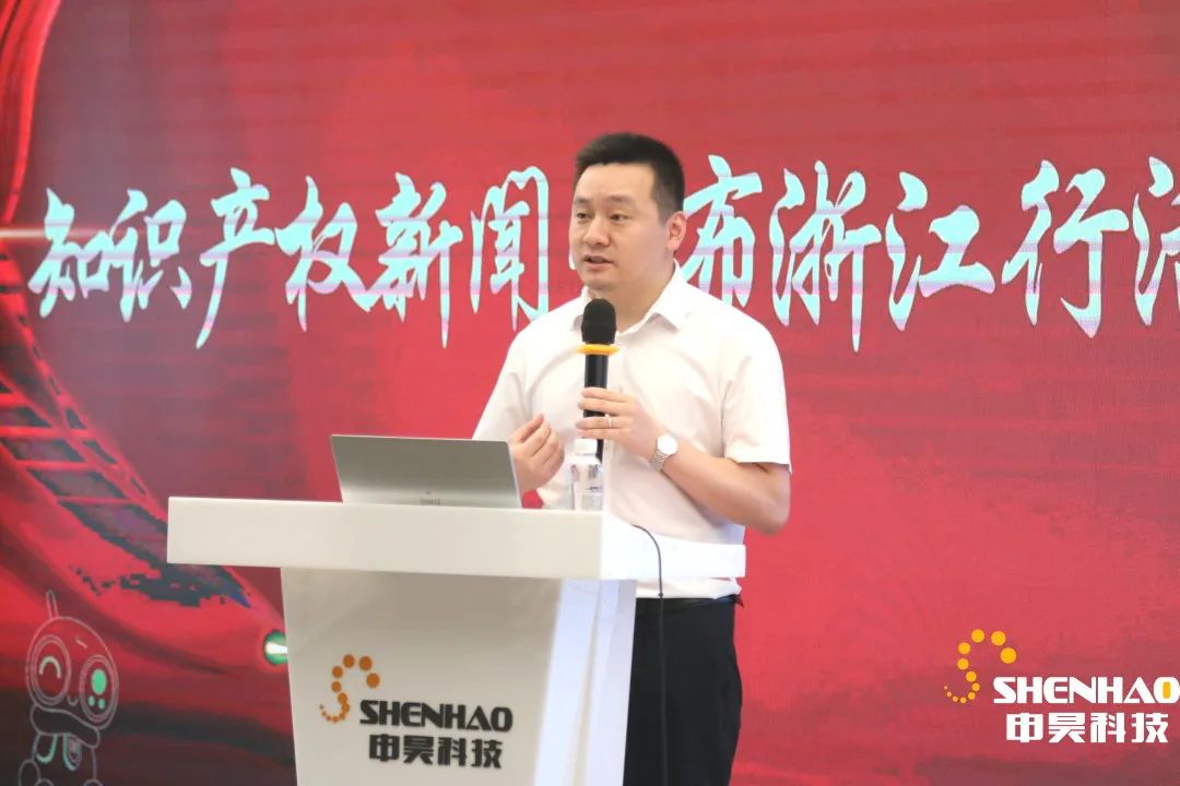 來自人民日報、新華社、中央廣播電視臺、經濟日報、中國日報、人民政協報、中國新聞社、澎湃新聞、中國知識產權報、浙江衛視、浙江日報等媒體記者在國家知識產權局辦公室二級巡視員呂麗、辦公室宣傳處副處長姚志偉等領導的帶領下,到申昊科技了解企業在知識產權方面的政策落實和技術成果,推動優秀企業知識產權創造和保護工作。浙江省知識產權局副局長顧文海、杭州市知識產權局處長沈建國、余杭區市場監督管理局副局長鄧帥陪同采訪。