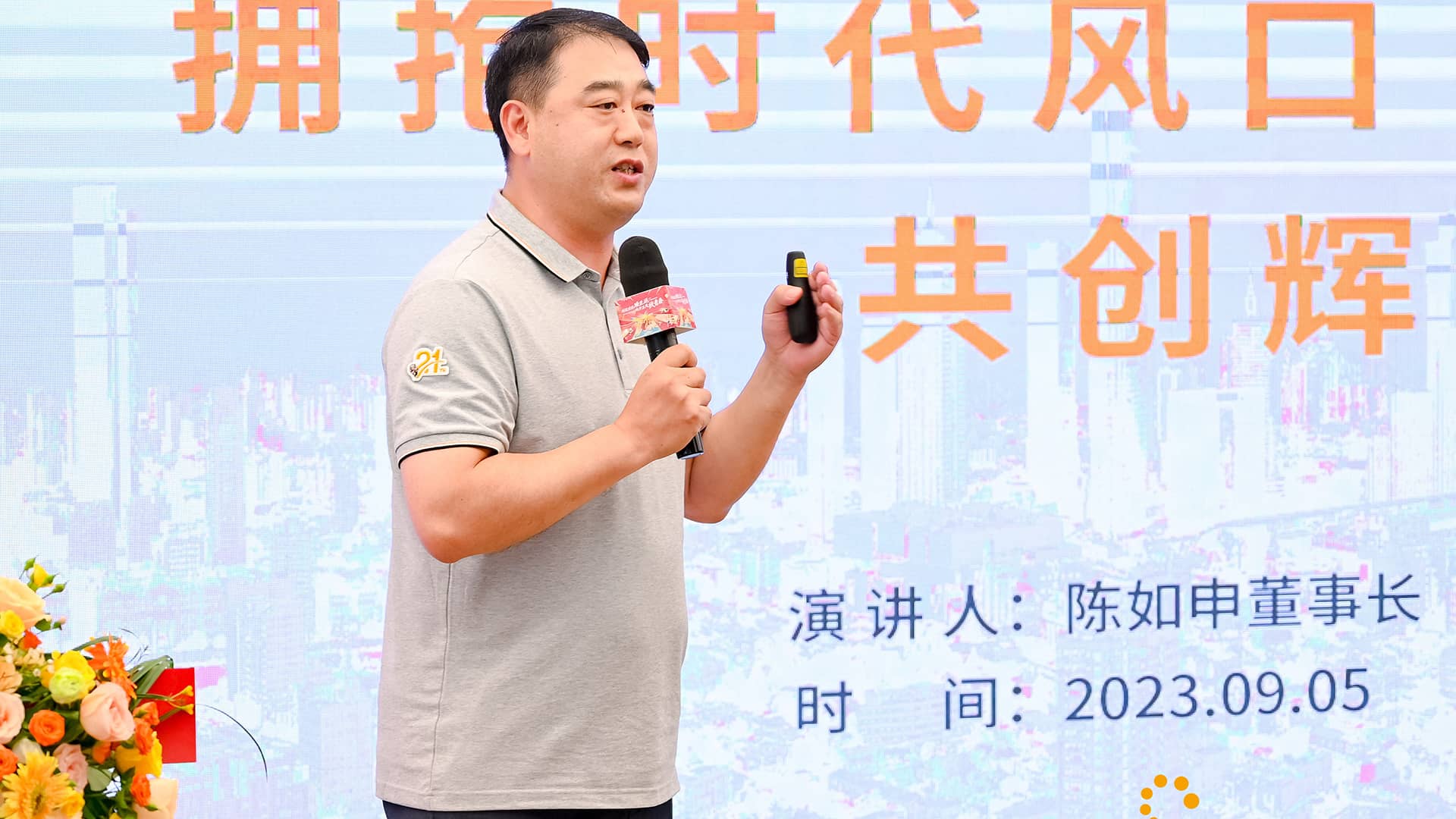 在慶典儀式上,陳如申董事長發表了以“擁抱時代風口,共創輝煌未來”為主題的重要致辭。